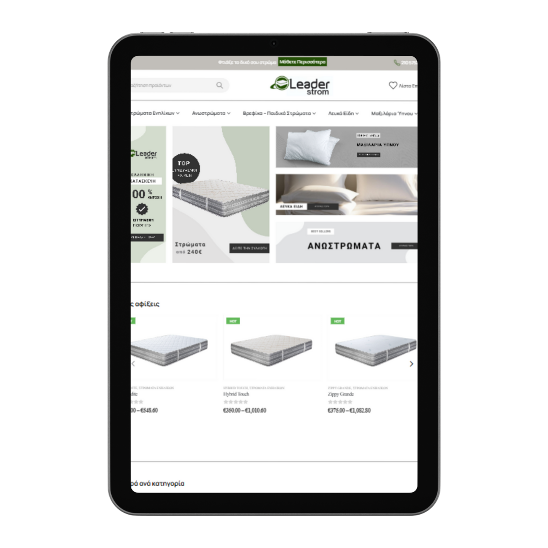 Η Leaderstrom είναι μια ελληνική εταιρεία με πάνω από 30 χρόνια εμπειρίας στην κατασκευή και εμπορία στρωμάτων ύπνου υψηλής ποιότητας. Με φυσικό κατάστημα και ισχυρή online παρουσία, η εταιρεία προσφέρει προϊόντα που συνδυάζουν άριστη υποστήριξη, απόλυτη άνεση και καινοτόμα υλικά.